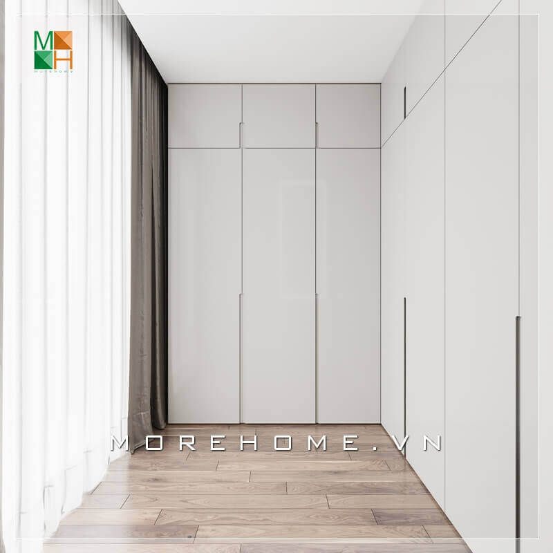 Mẫu tủ quần áo phòng ngủ hiện đại thiết kế âm tường kịch trần sang trọng màu trắng sang trọng tăng sự tiện nghi cho căn phòng ngủ chung cư, nhà phố, biệt thự