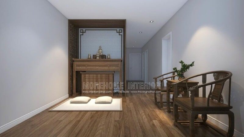Với lòng thành kính cũng như sự am hiểu về cách bố trí, thiết kế phòng thờ sao cho hợp phong thủy, Morehome xin giới thiệu quý vị mẫu bố trí phòng thờ thờ Phật Quan Âm trong dự án thiết kế nội thất biệt thự Vinhomes Imperia Hải Phòng.