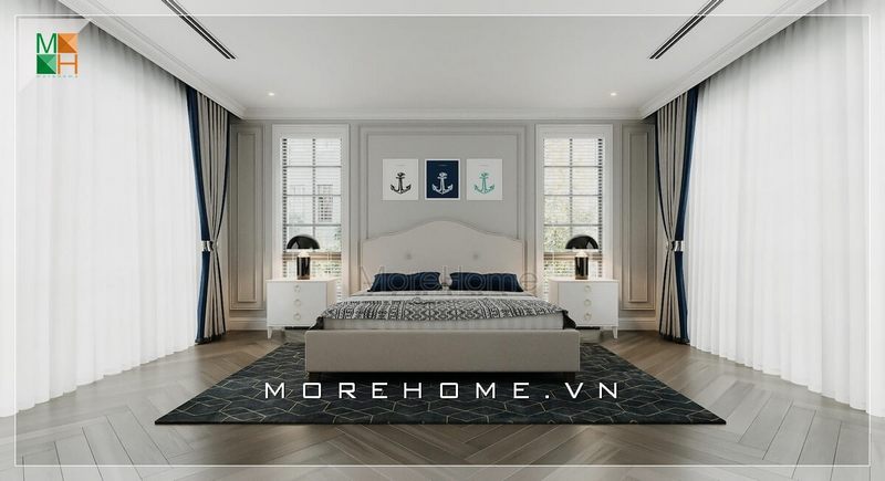 Những bố trí nội thất vuông vắn, không cầu kì rườm rà mà mang vẻ đẹp tiện nghi của phong cách hiện đại thật cuốn hút trong không gian phòng ngủ biệt thự, nhà phố