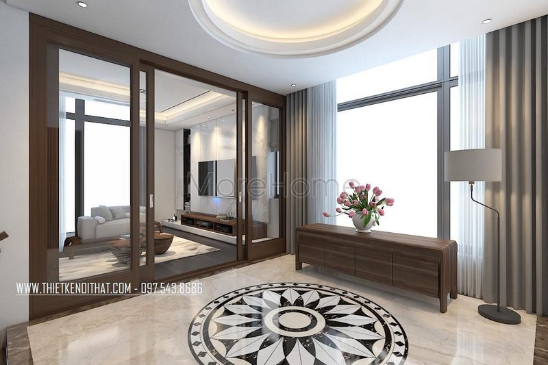 Mẫu thiết kế nội thất chung cư, nhà phố, biệt thự theo phong cách hiện đại thiết kế có cửa ban công thông thoáng có ánh sáng tự nhiên chiếu vào.
