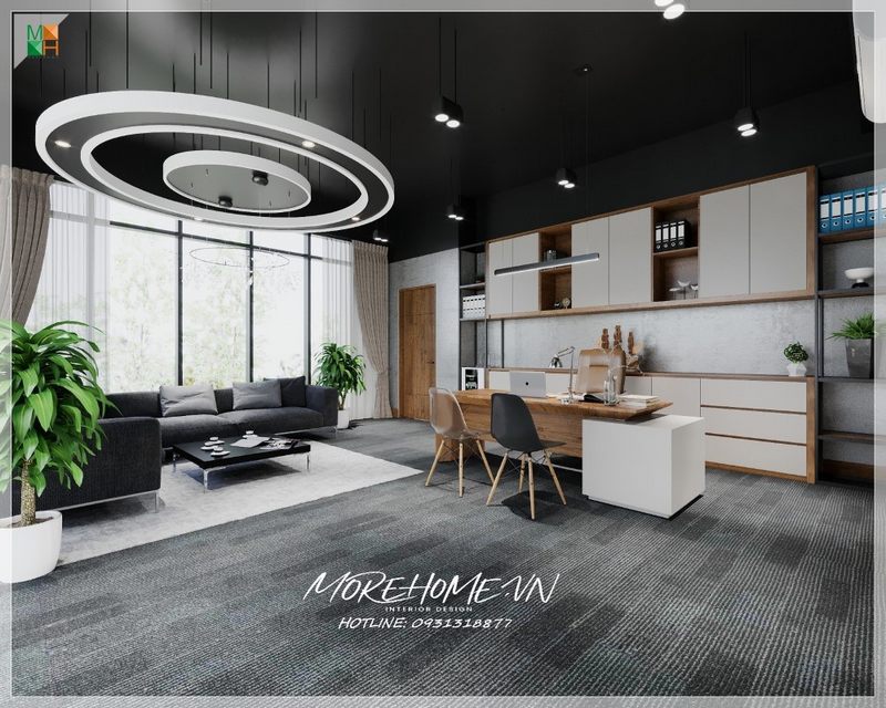 Việc trang trí phòng làm việc của giám đốc bằng nội thất gỗ công nghiệp hiện đại và tiện nghi.