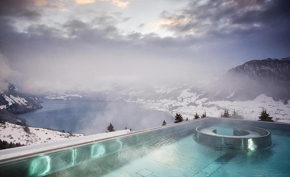 Nằm trên đỉnh núi Mount Bürgenstock nổi bật, biệt thự đầu năm 1900 này có 23 phòng nghỉ sang trọng, rạp chiếu phim riêng, trung tâm chăm sóc sức khoẻ và hồ bơi tạo cảm giác vô tận nước nóng nhìn ra hồ Lake Lucerne